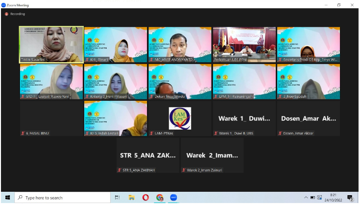 Mojokerto — Lembaga Akreditasi Mandiri Pendidikan Tinggi Kesehatan (LAM-PTKes) melaksanakan kegiatan monitoring dan evaluasi pasca akreditasi pada Program Studi D3 Keperawatan Universitas Bina Sehat PPNI Mojokerto. Kegiatan ini dilakukan secara daring pada Senin (24/10/2023).